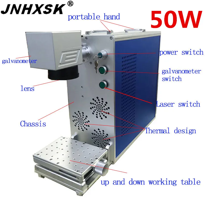The Latest JNHXSK new design 50W fiber portable laser marking machine 200x200mm/300x300mm engraver cutter for